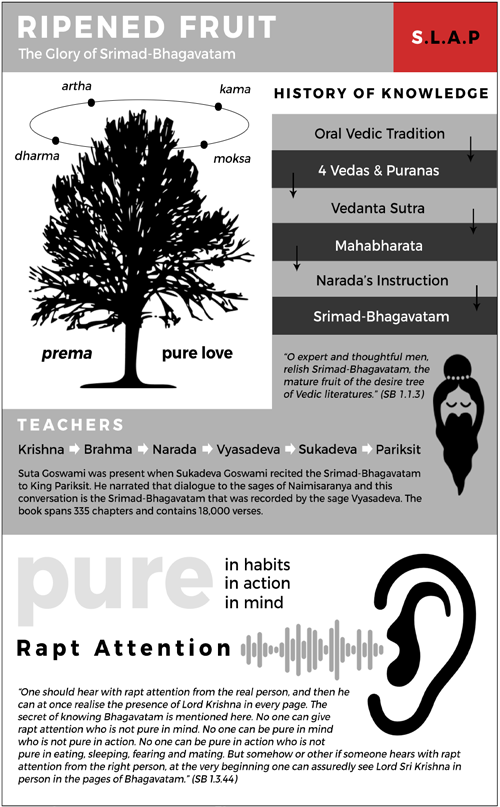 For the earthly humans, Vyasadeva chose to record the recital between Suta Goswami and Saunaka Rishi as the written form of Srimad-Bhagavatam. At the time of writing, numerous narrations of Srimad-Bhagavatam were being conducted amongst the sages. Once this dialogue was put into written form, however, it became the standard. Spontaneous recitals of Srimad-Bhagavatam gradually disappeared, and as people lost their recollective powers they took shelter of this documented form of the epic conversation.