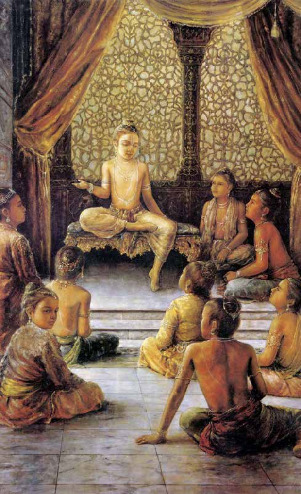 The demanding world of materialistic family life can consume one’s attention and leave little time, energy and enthusiasm for anything else. Entangled and preoccupied, one drowns in the fatal conceptions o&#x66;*“I, me and mine,”*&#x69;gnorant of the real spiritual essence. Thus, Prahlada warned his young comrades to remain free from material entanglement by keeping close contact with saintly persons. When Prahlada explained how he received this transformative knowledge from Narada Muni, his friends were completely puzzled – *“Since we’ve all been in school under the strict eye of Sanda and Amarka, when did you receive this knowledge?”*
